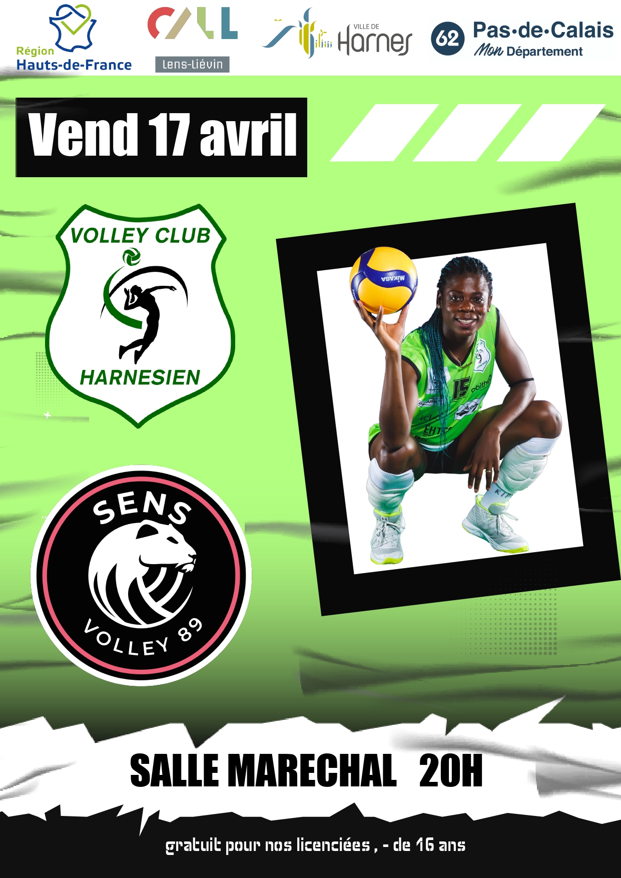 VCH vs Sens + Ajouter à mon Agenda Google + iCal / Outlook export 00 jours 00 heures 00 minutes 00 secondes Date 17 Avr 2026 Heure 20 h 00 min Lieu Salle Maréchal Harnes Organisateur Volley Club Harnésien Site Web https://www.facebook.com/vcharnesien/ Partagez cet événement