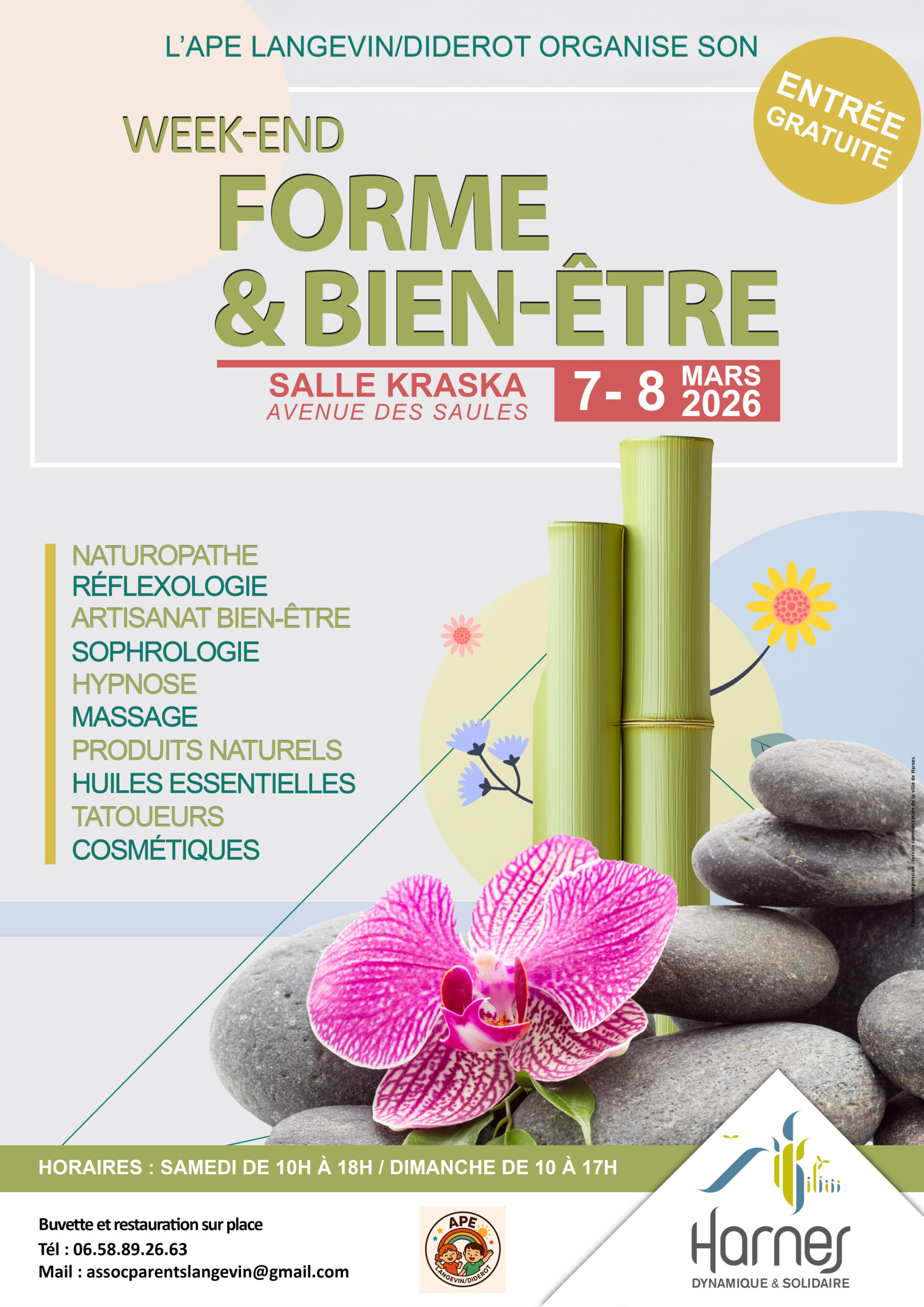 Week-end forme & bien-être + Ajouter à mon Agenda Google + iCal / Outlook export 00 jours 00 heures 00 minutes 00 secondes Date 07 Mar 2026 Lieu Salle Kraska Avenue des Saules Organisateur APE Langevin Diderot Partagez cet événement